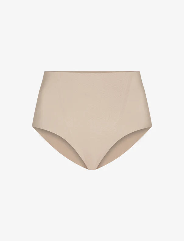 Commando's Zone Smoothing Shapewear Brief features a super-high rise waist, a raw-cut hem, and light-medium compression. This style offers extra-targeted smoothing properties through zoned smoothing panels, while still offering a seamless and smooth undergarment effect.
