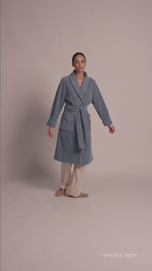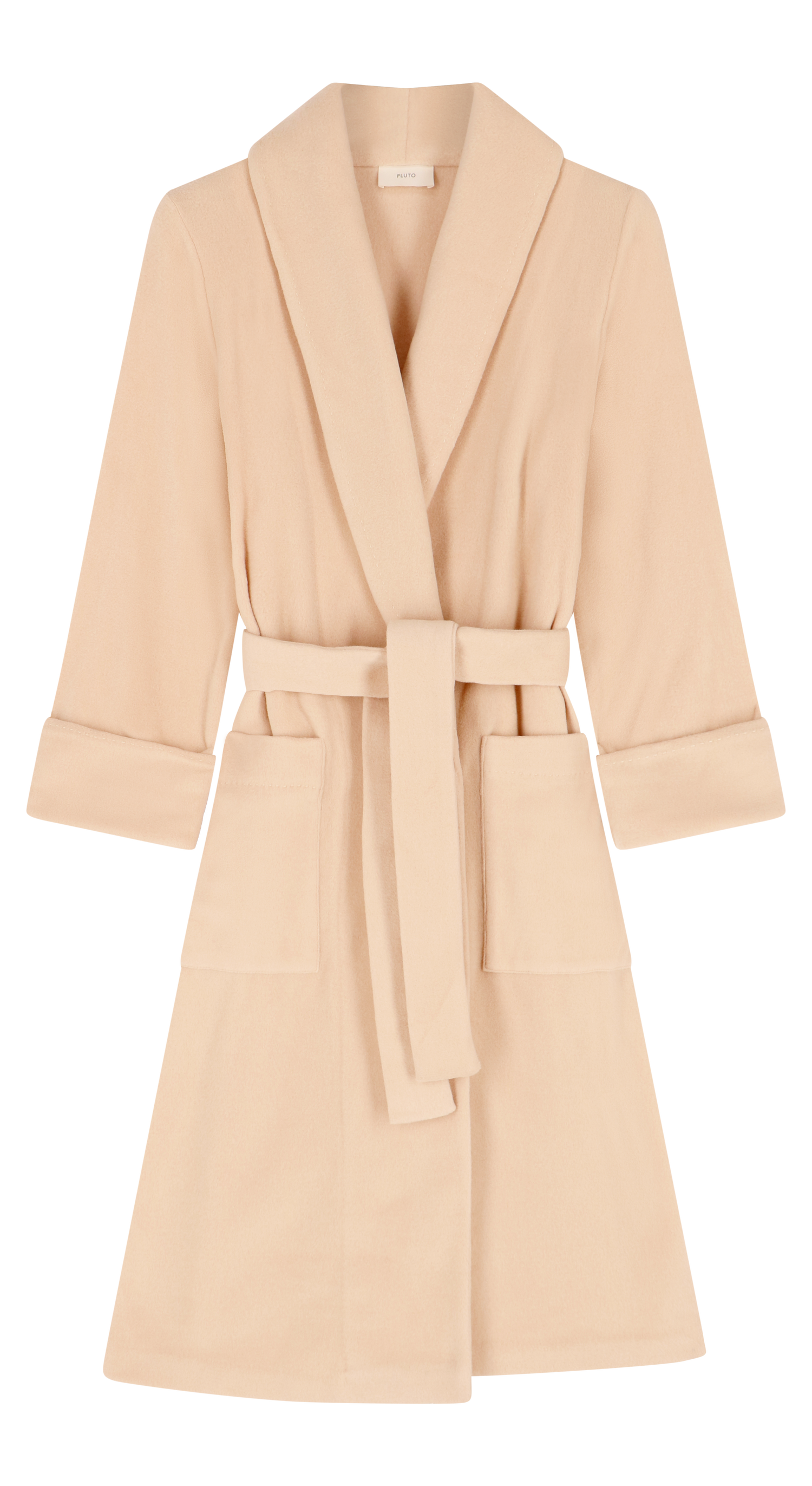 The Pluto Ruth Fleece Short Robe is the perfect luxury to indulge in to keep you cozy on those cold winter mornings and evenings. It Is 70% Polyester and 30% Viscose Soft Fleece. It has a shawl collar, 2 pockets, and a tying belt.