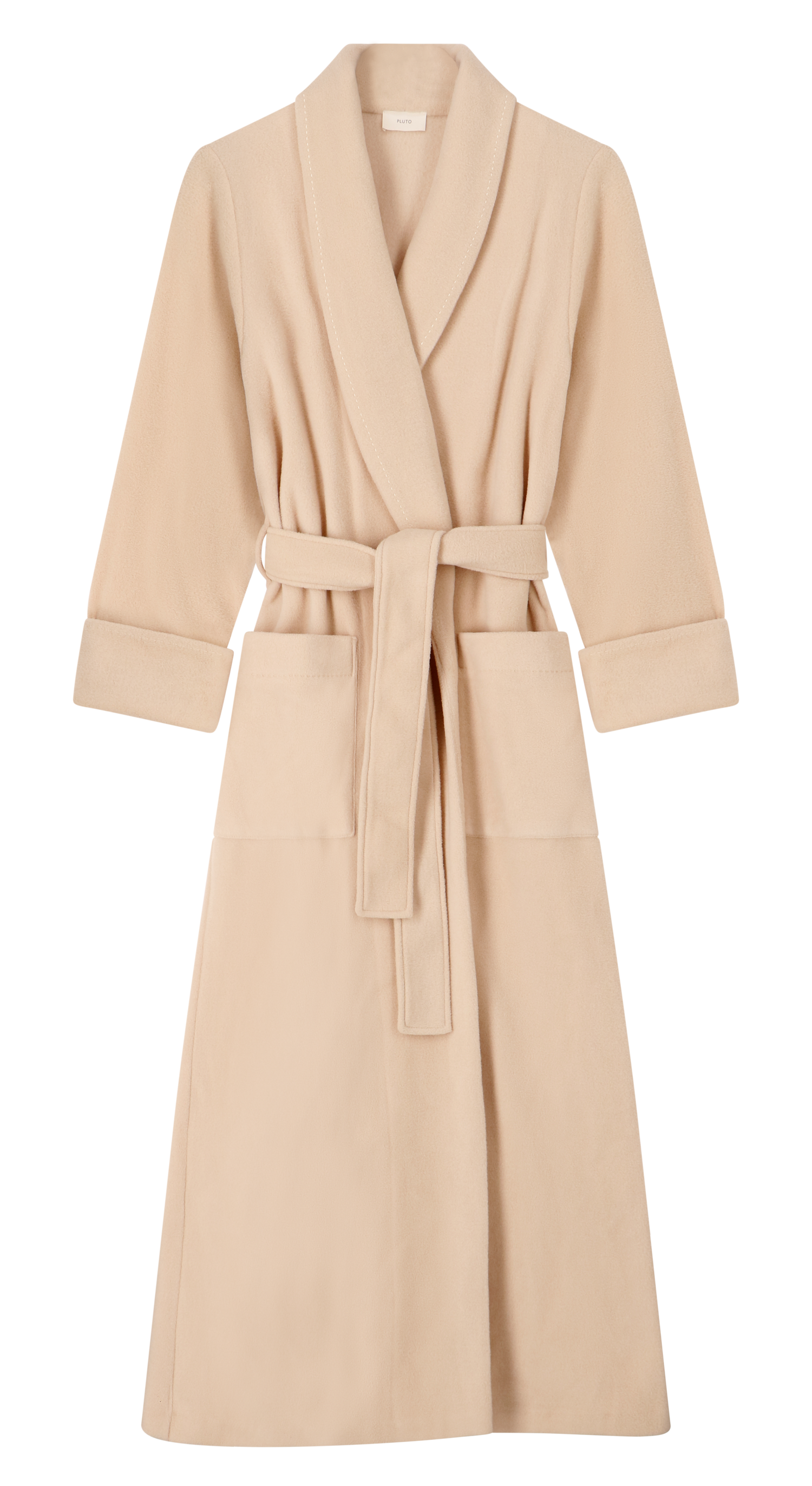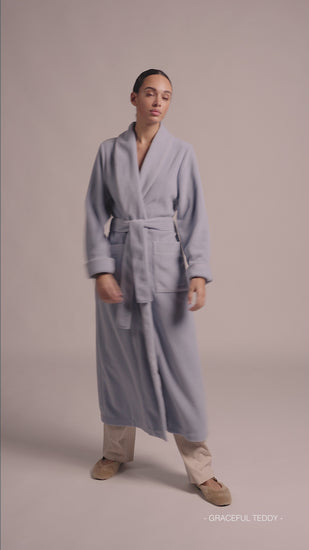 The Pluto Ruth Fleece Long Robe is the perfect luxury to indulge in to keep you cozy on those cold winter mornings and evenings. It Is 70% Polyester and 30% Viscose Fleece. It has a shawl collar, 2 pockets, and a tying belt.