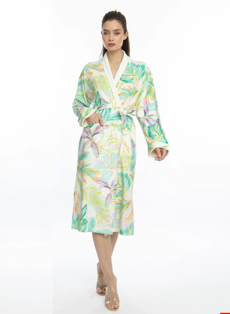 The Bahamas Green Long Robe brings a splash of island-inspired color to your loungewear collection. Crafted from lightweight, silky-soft fabric, it’s perfect for cozy mornings, spa days, or relaxed evenings with a fresh, vibrant touch.