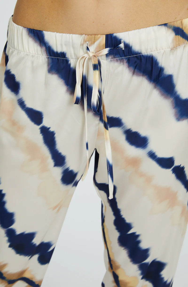 The Wrap Up By VP Long Sleeve Pajama Set features a stunning tie-dye palette in blue, midnight blue, beige, and white, this silky-soft poly set includes a long-sleeve button-up top and relaxed long pants. Lightweight and wrinkle-resistant, it's perfect for lounging in style or packing in your suitcase for a dreamy getaway.