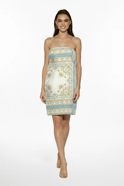 Designed with an adjustable Velcro closure, it offers a secure yet customizable fit for all-day ease. Versatile in style, this wrap can be worn over a bathing suit for a relaxed cover-up or styled like a strapless dress for lounging in comfort.